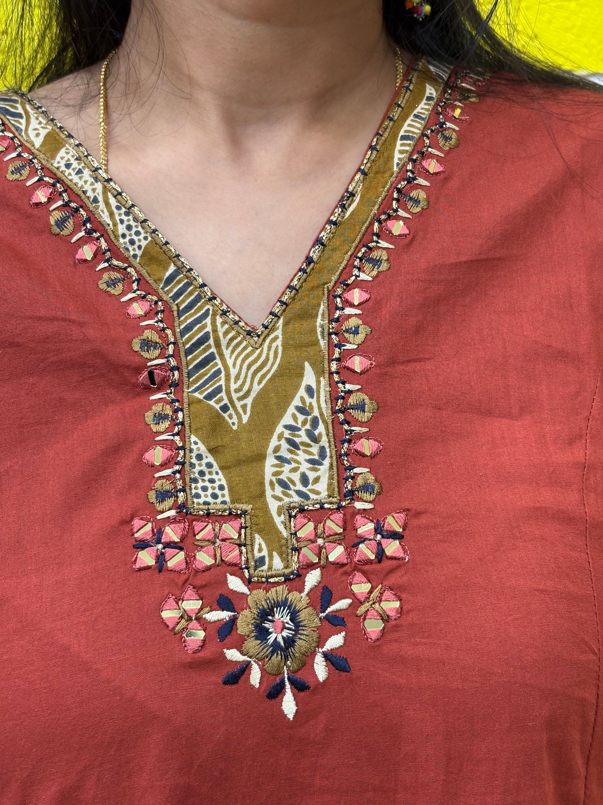 - Fit: Straight to slightly flared kurti with relaxed-fit pants