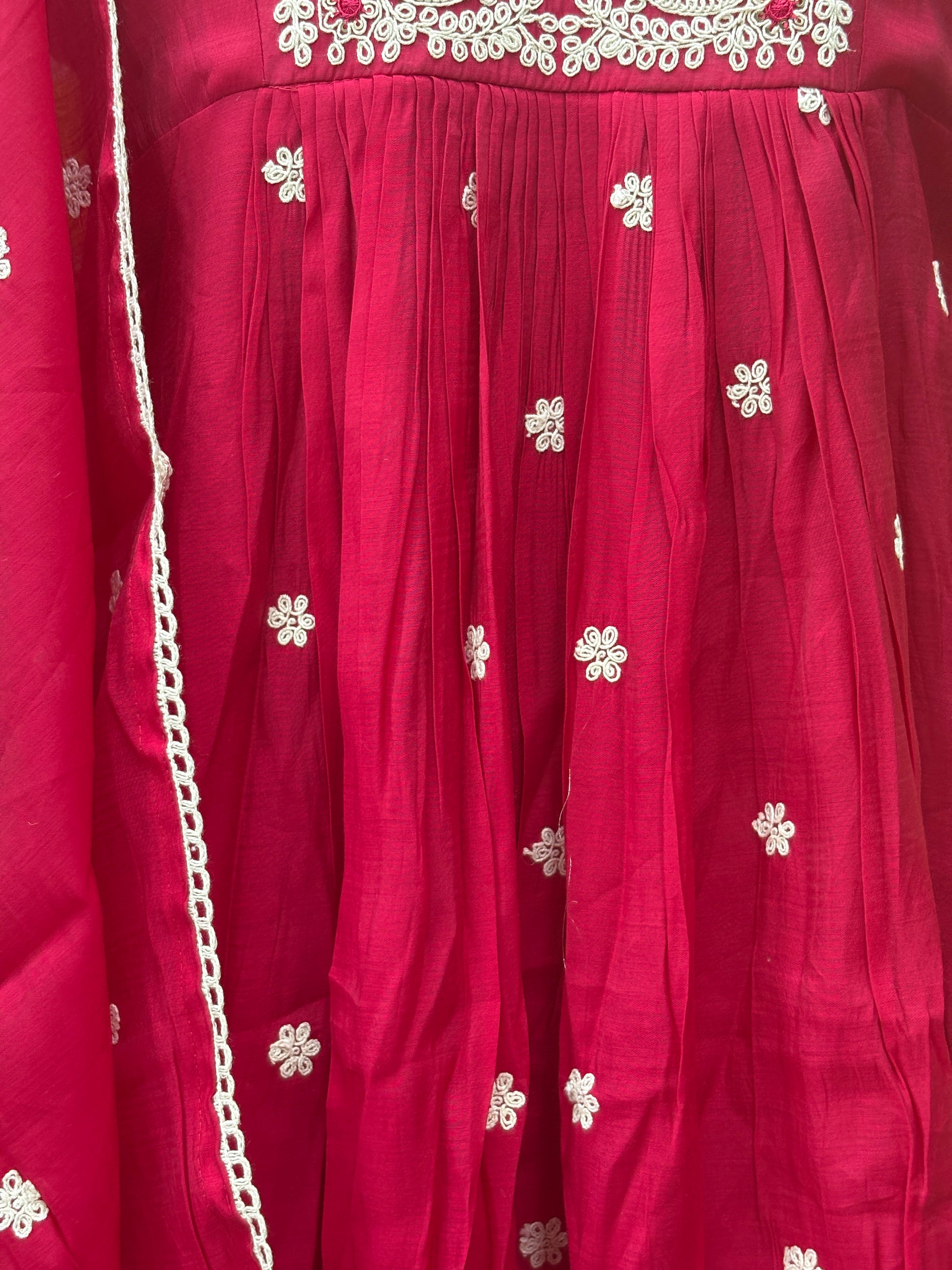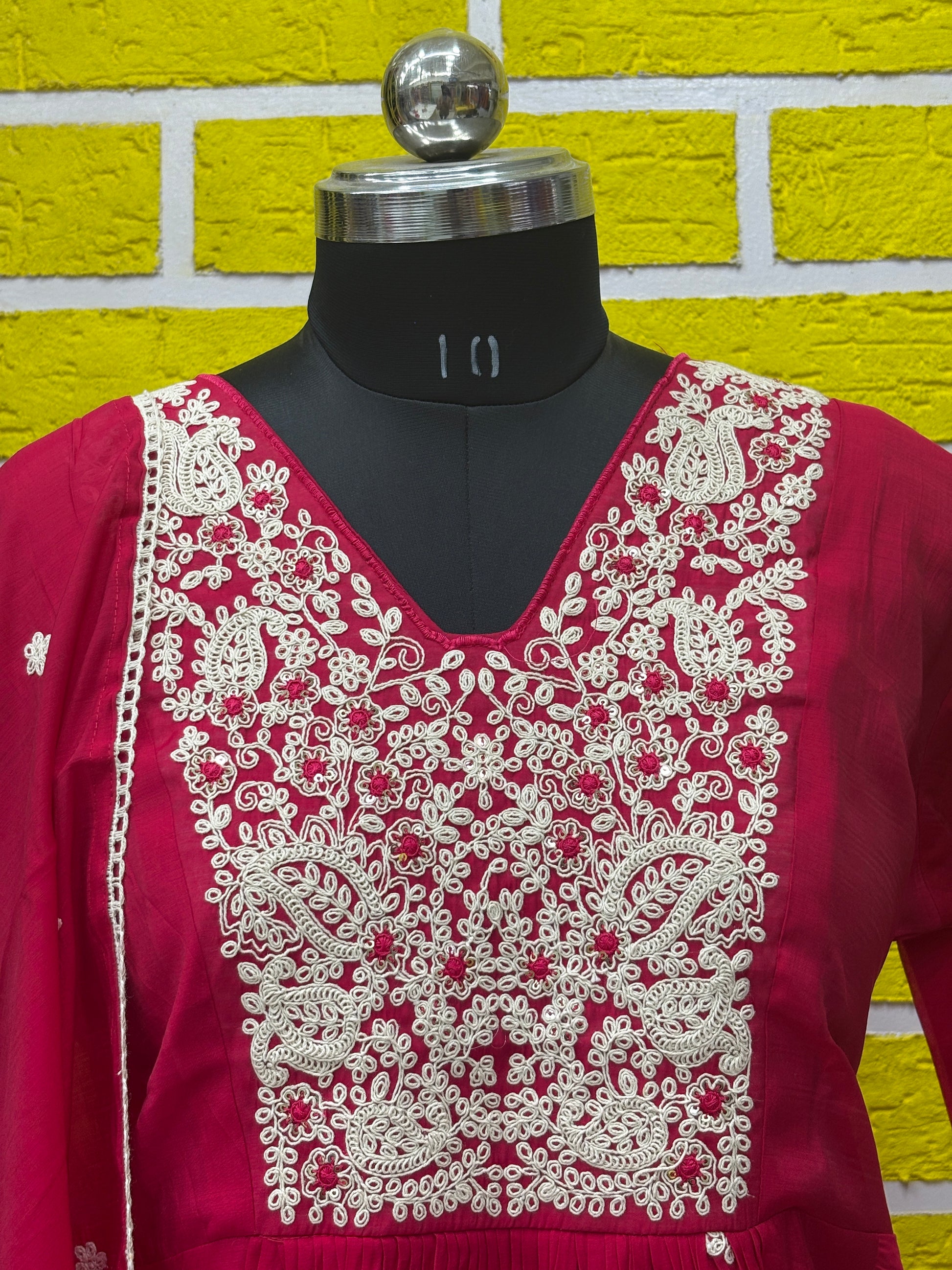 Mul Chanderi Premium plus size kurti set with Embroidery work Red AAKS0UZJ9