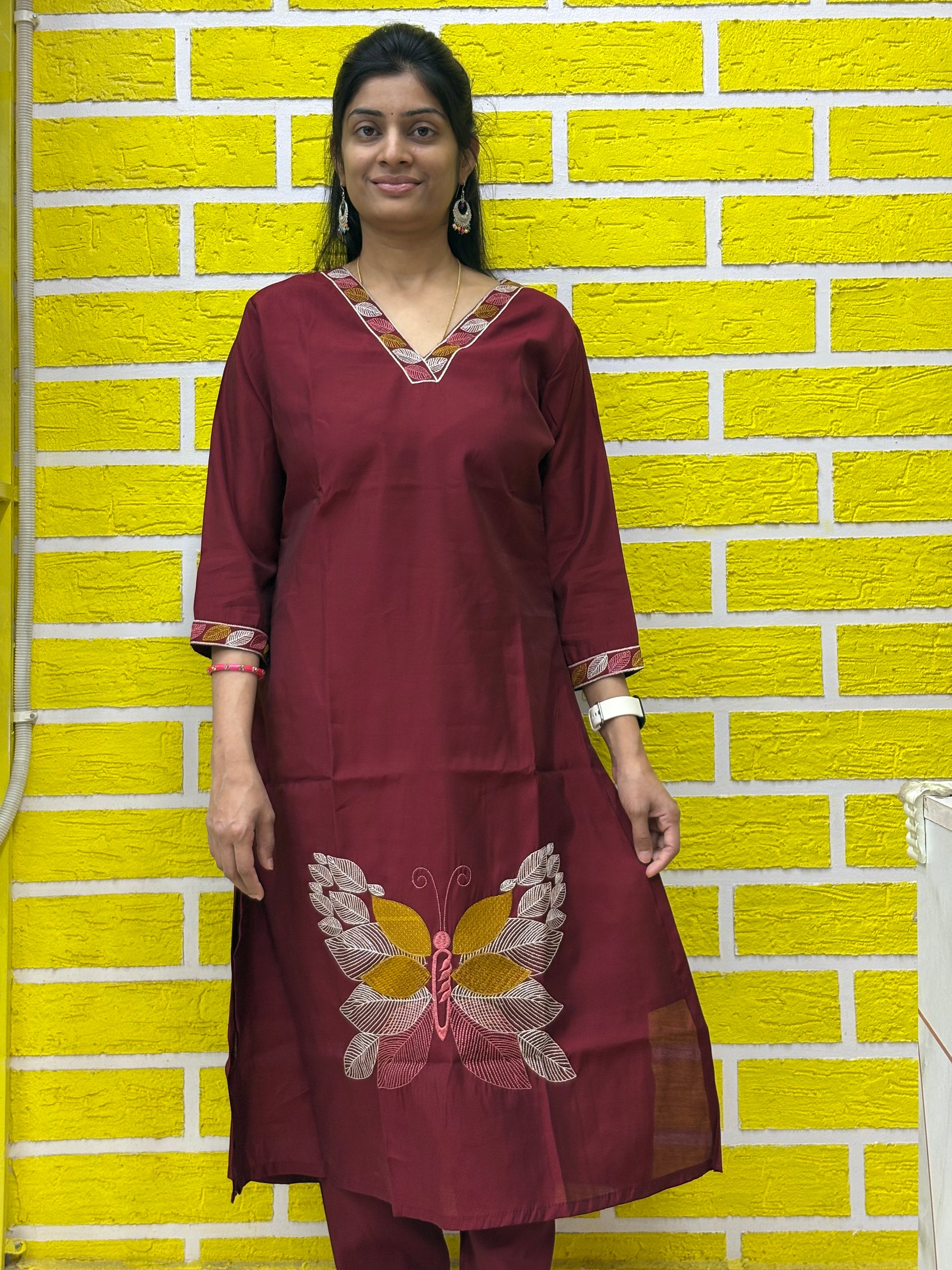 - Fit: Straight to slightly flared kurti with relaxed-fit pants